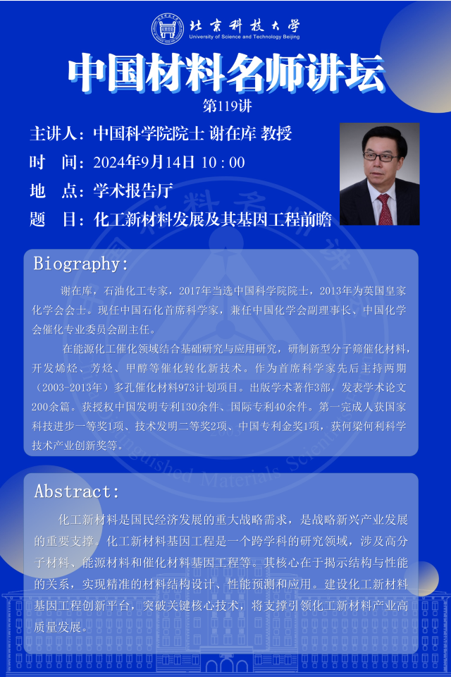 中國材料名師講壇第119講——中國科學院院士 謝在庫 教授