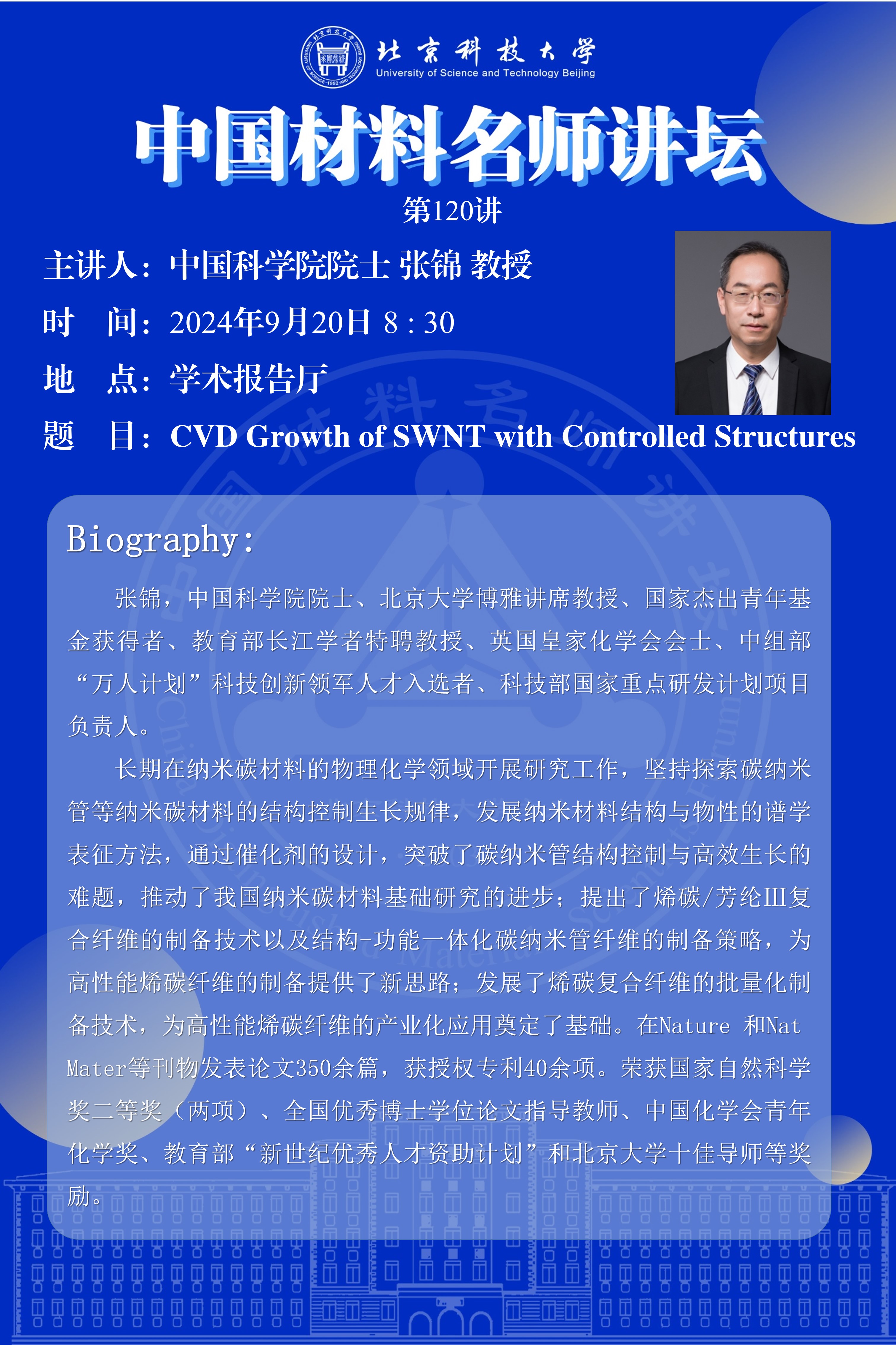 中國材料名師講壇第120講——張錦 院士