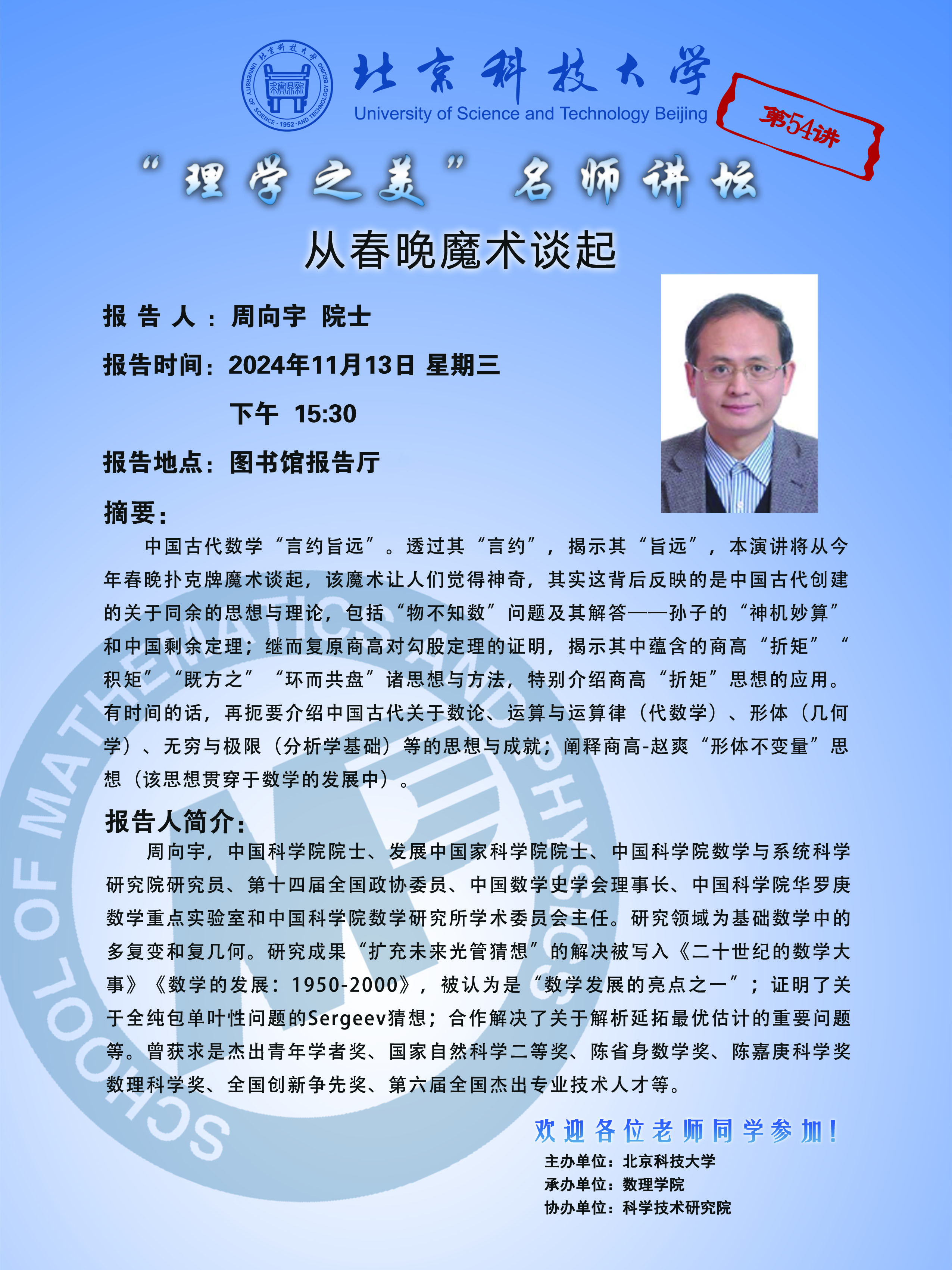 “理學(xué)之美”名師講壇:從春晚魔術(shù)談起——周向宇 院士